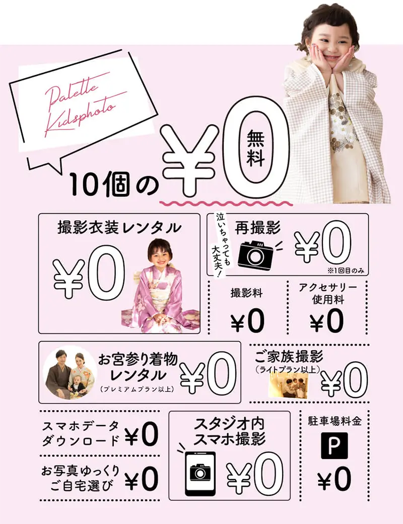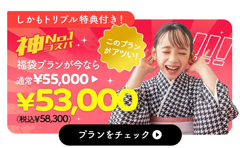 七五三撮影の限定特典、プラン、お宮参り、オプションについてご紹介いたします。