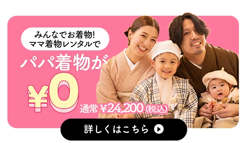 家族みんなで着物を着ませんか。着付け・着物一式つきなので手ぶらでOK。