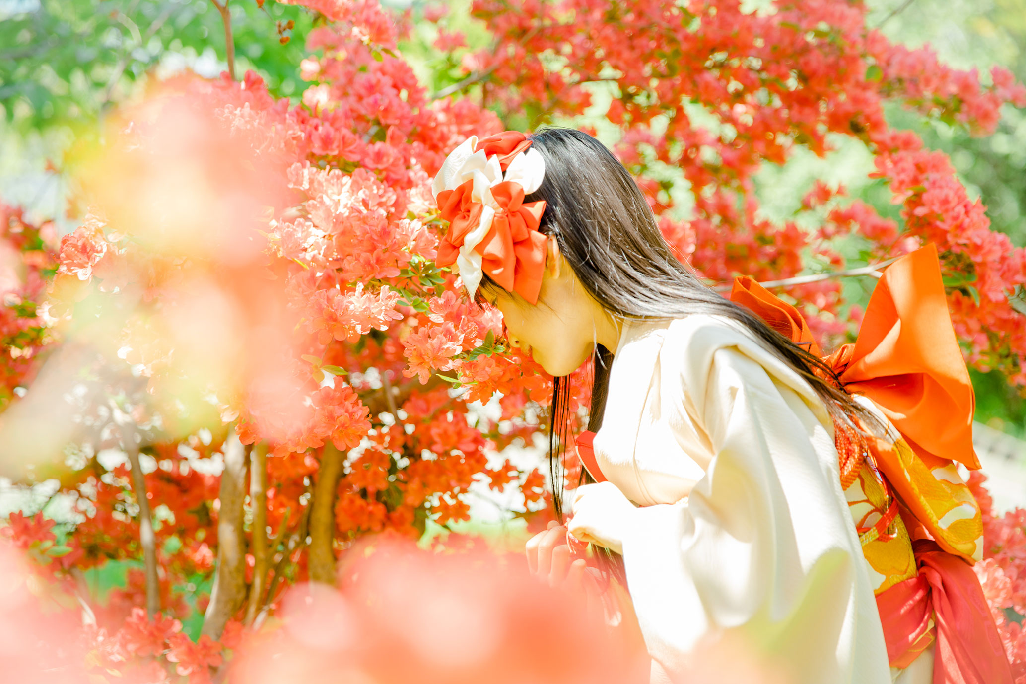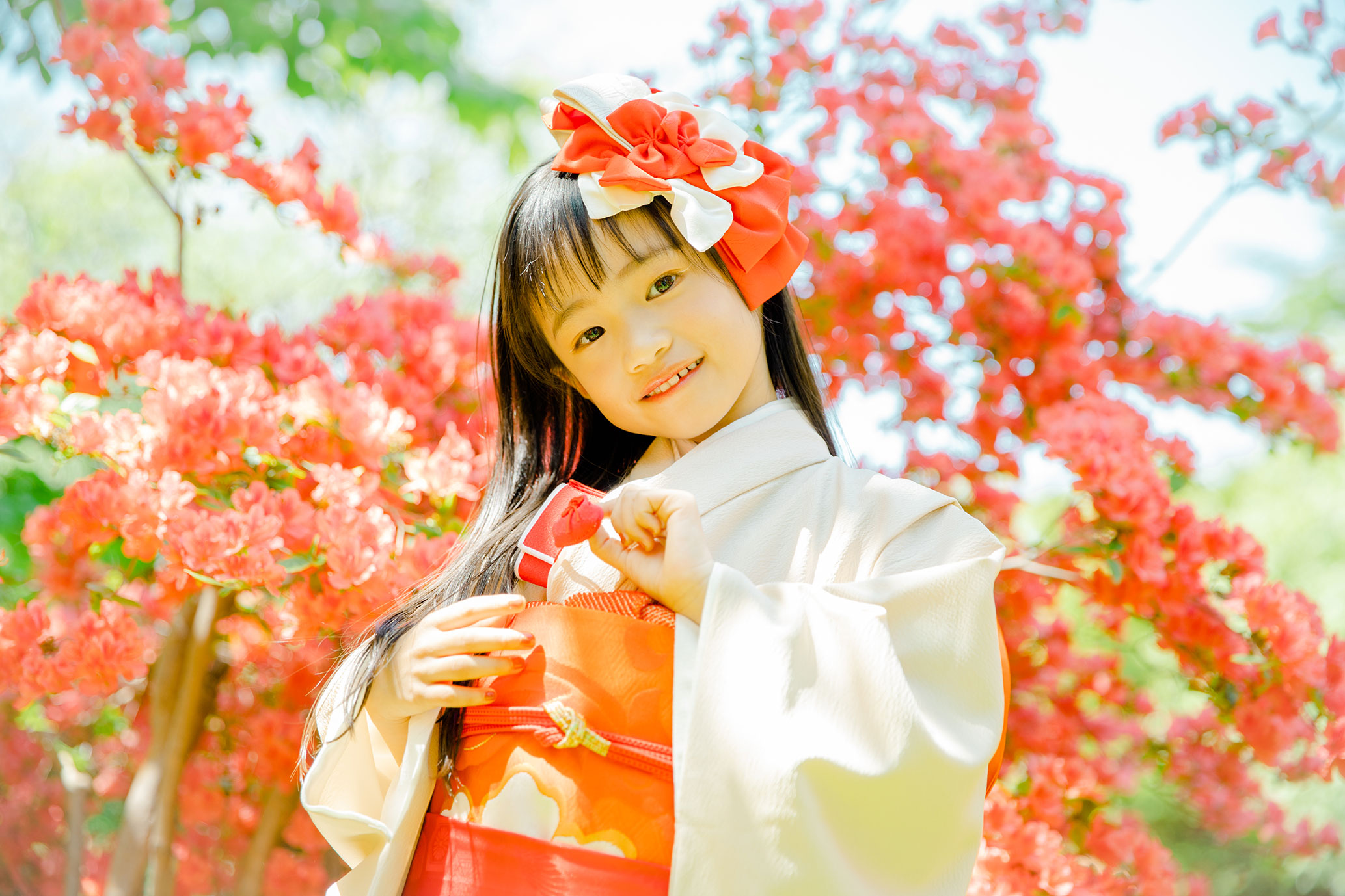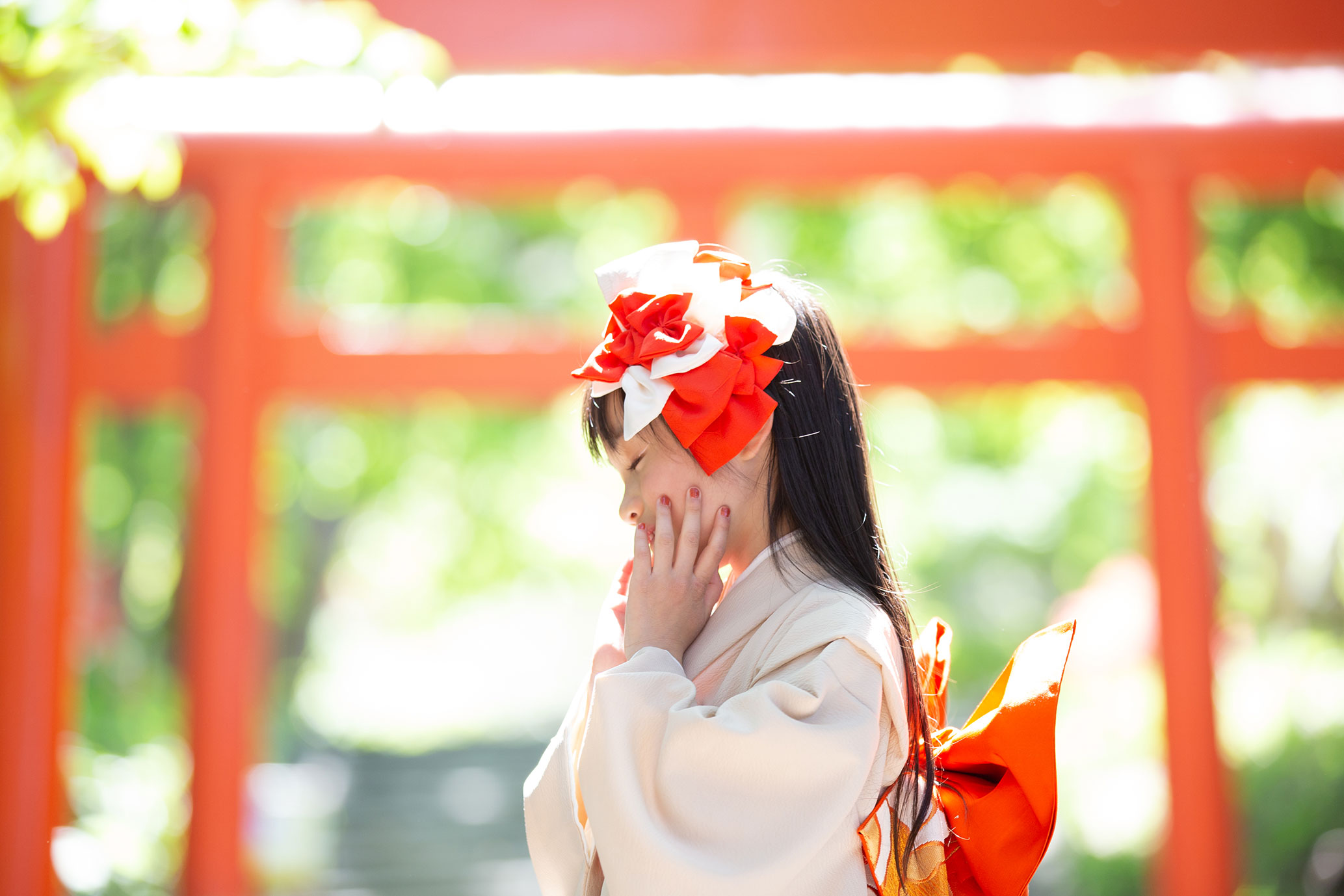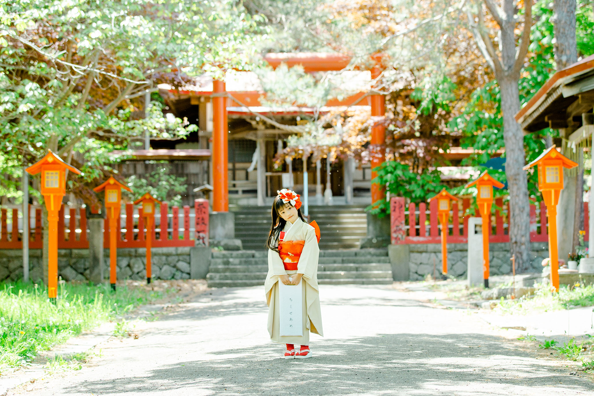ずらりと並ぶ朱色の鳥居が、七五三やお正月のお着物姿を最高にドラマチックに、そして色鮮やかに引き立ててくれます。