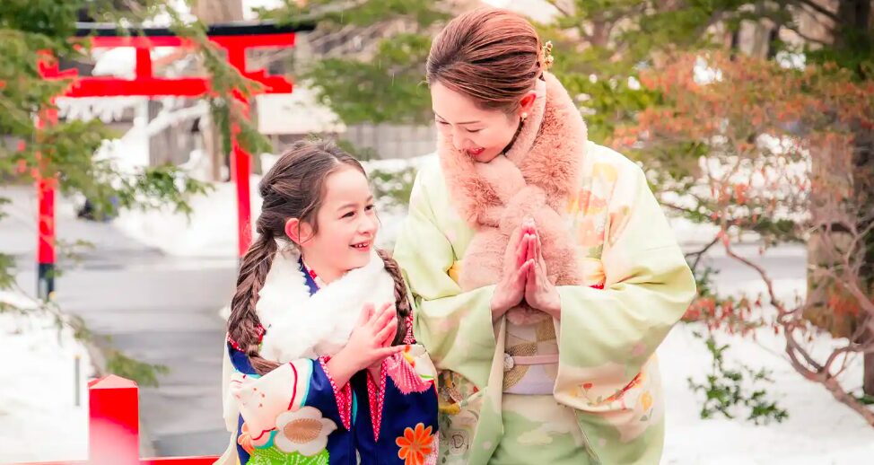 函館の歴史を刻む亀田八幡宮が、お子様の成長を四季折々の彩りで鮮やかに引き立てます。