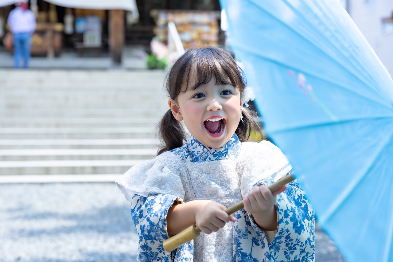 特に和の雰囲気が漂う境内はお着物との相性が抜群で、背伸びしたお子様の仕草ひとつひとつが絵になります。