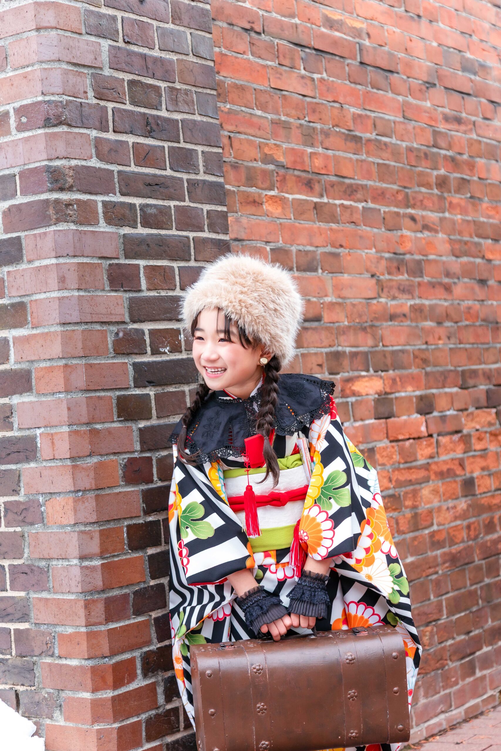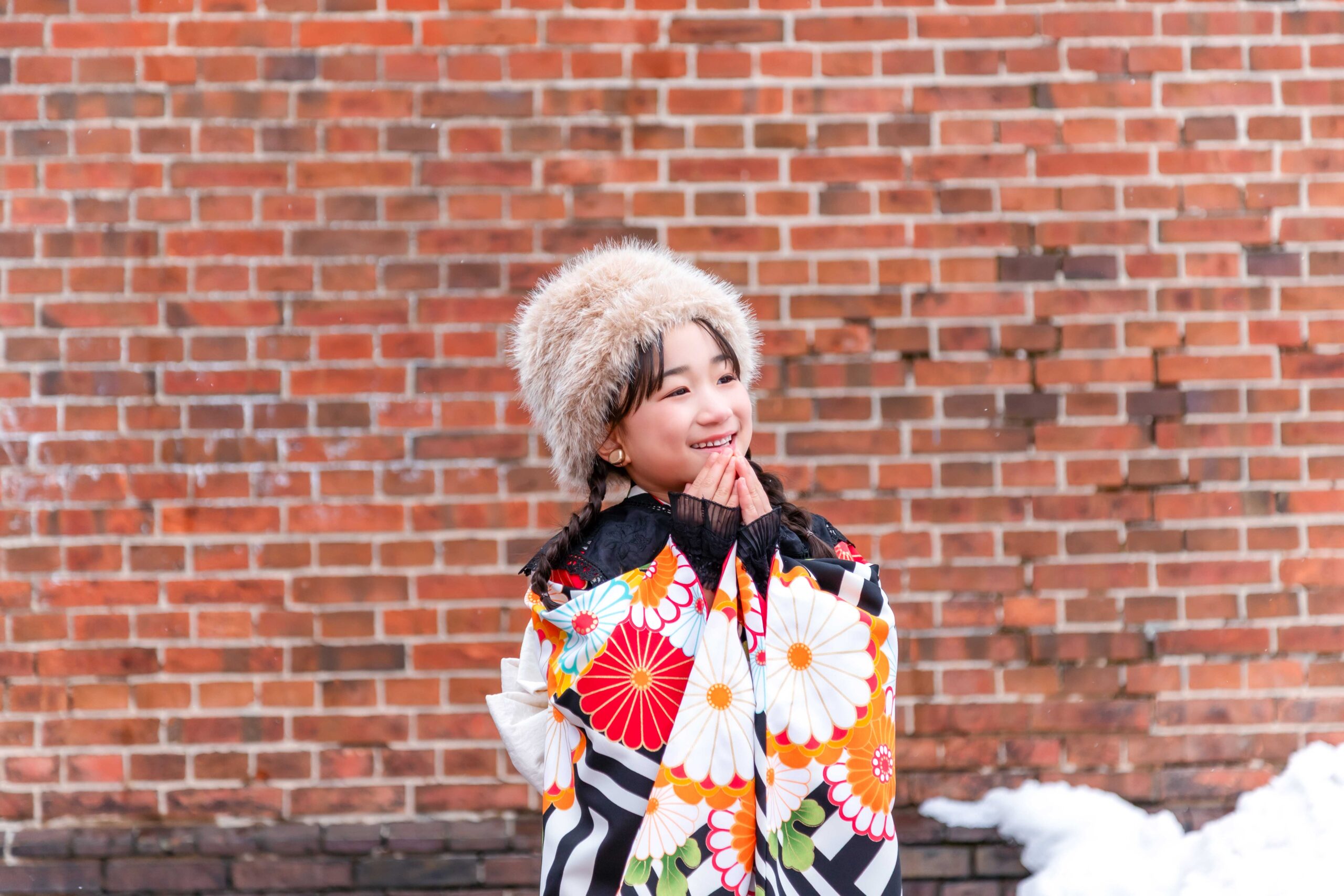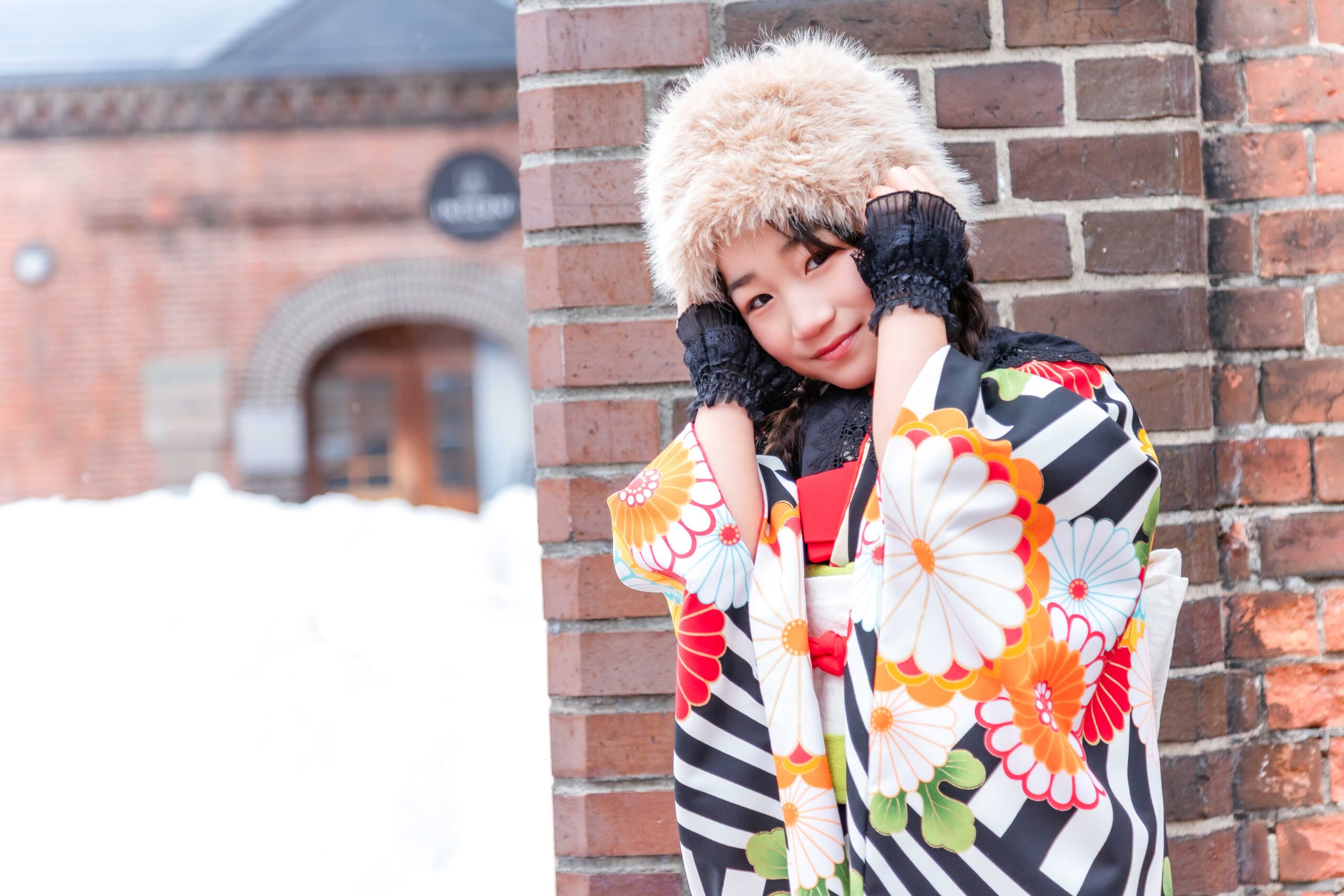 「大雪地ビール館」の魅力は、なんといってもそのクラシックな雰囲気。重厚なレンガの壁は、お子様の愛くるしさを引き立て、まるで海外の絵本から飛び出してきたような一枚が撮れちゃいます。北海道らしい開放感と、歴史を感じる温かみがミックスされた、特別な記念撮影になりますよ。