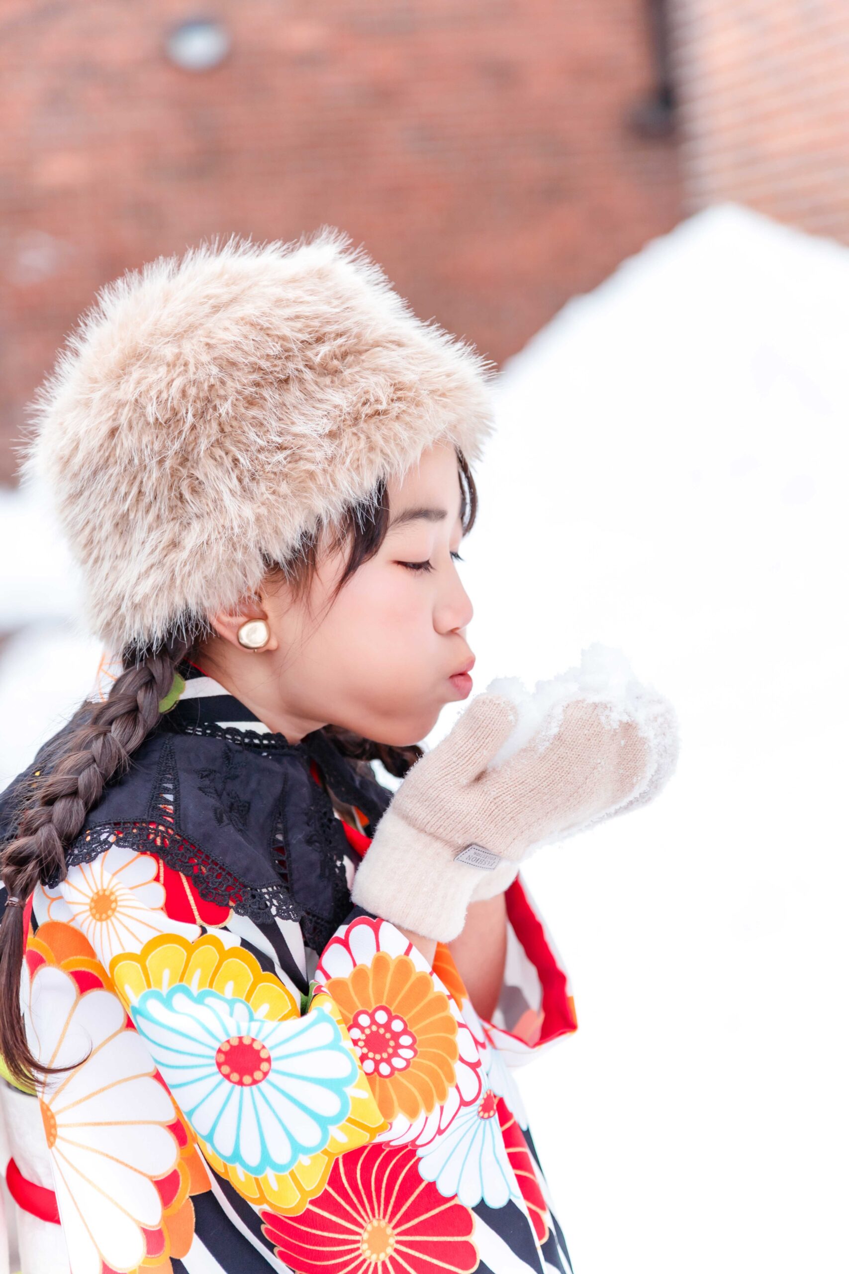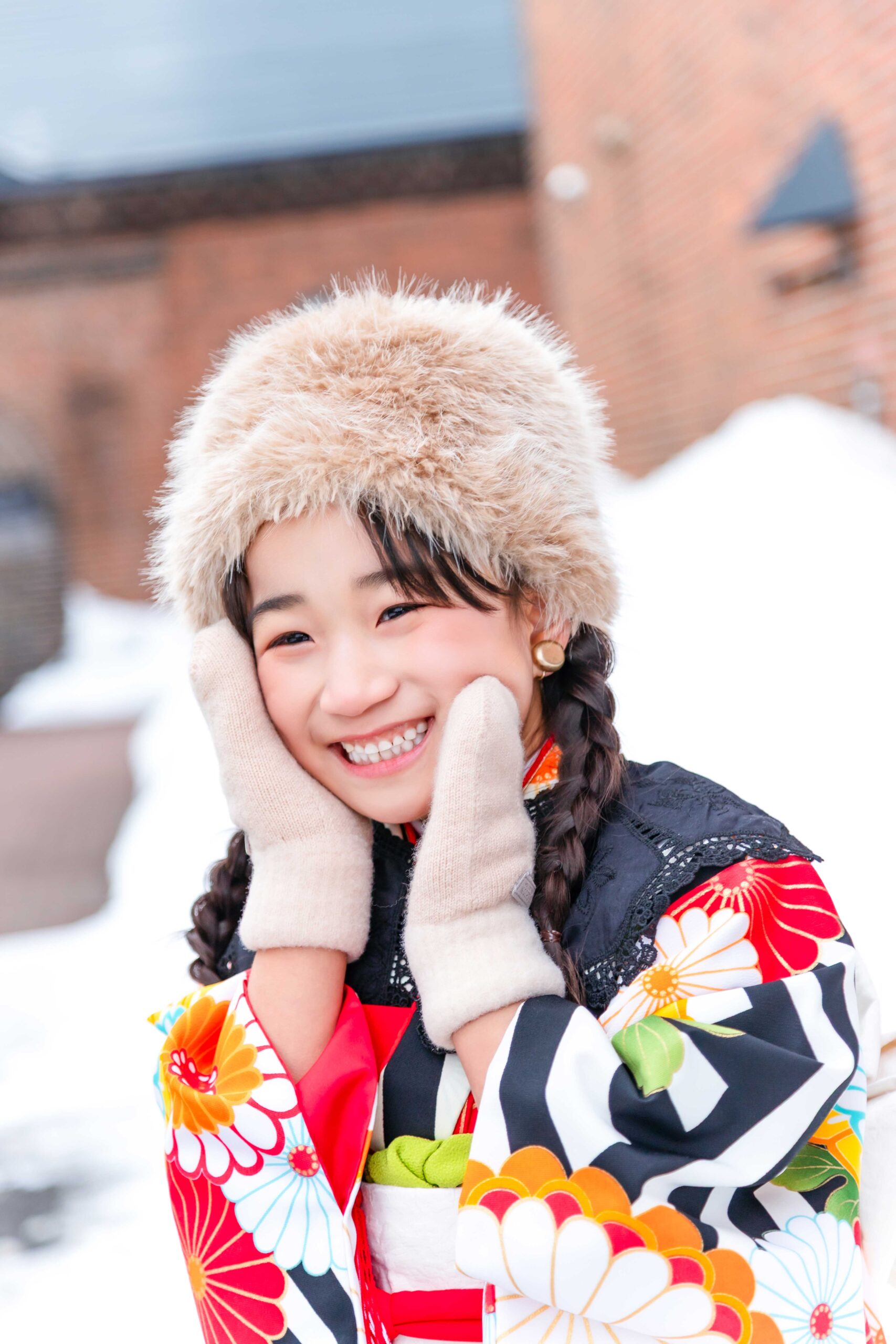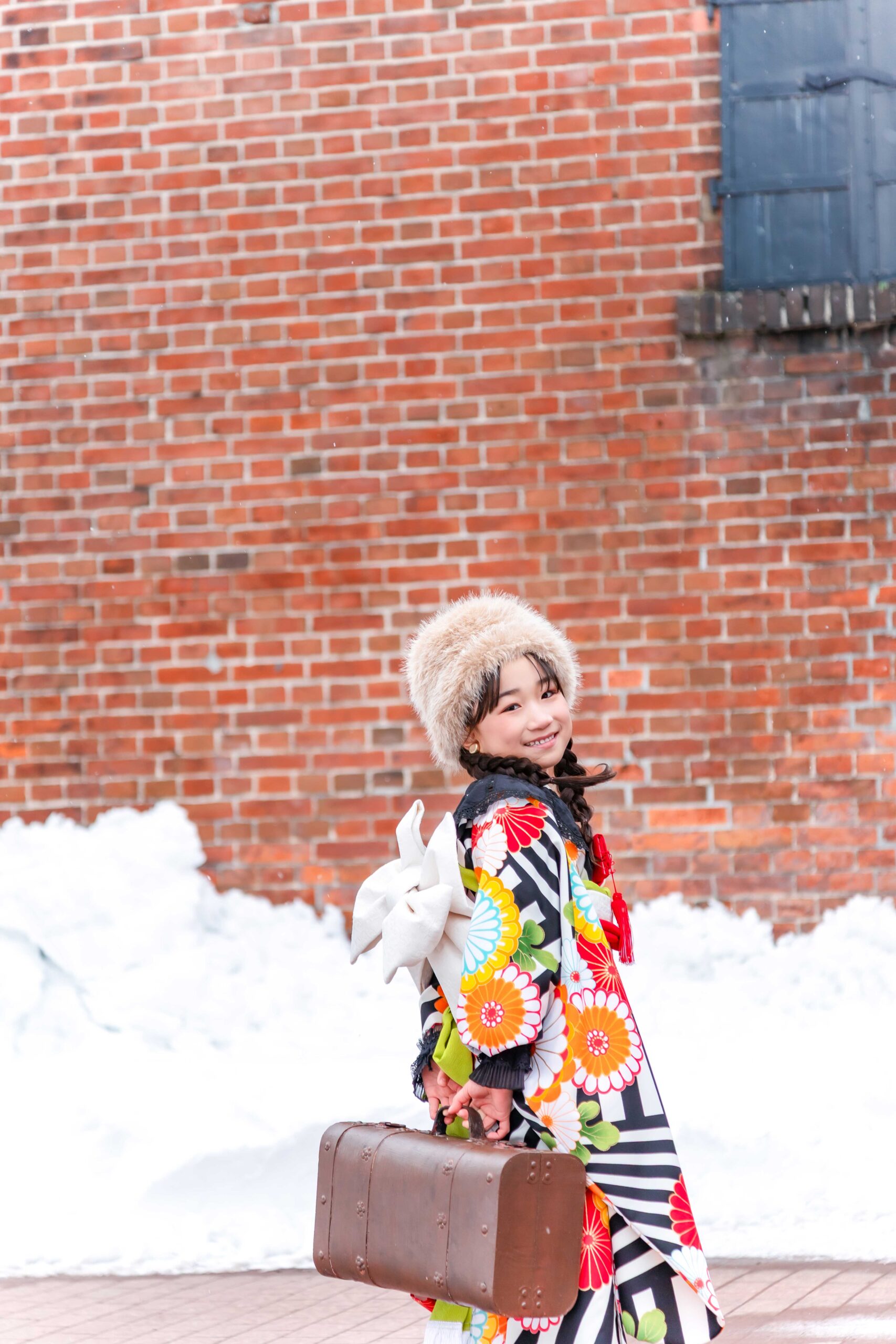 「大雪地ビール館」の魅力は、なんといってもそのクラシックな雰囲気。重厚なレンガの壁は、お子様の愛くるしさを引き立て、まるで海外の絵本から飛び出してきたような一枚が撮れちゃいます。北海道らしい開放感と、歴史を感じる温かみがミックスされた、特別な記念撮影になりますよ。