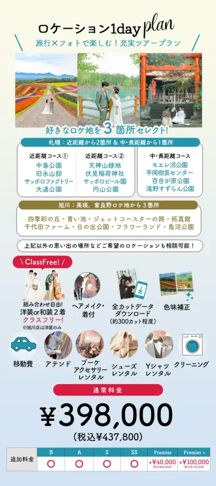 Palette札幌中央店では ロケーション撮影だからといって、衣装を我慢や妥協せずご案内できます。
