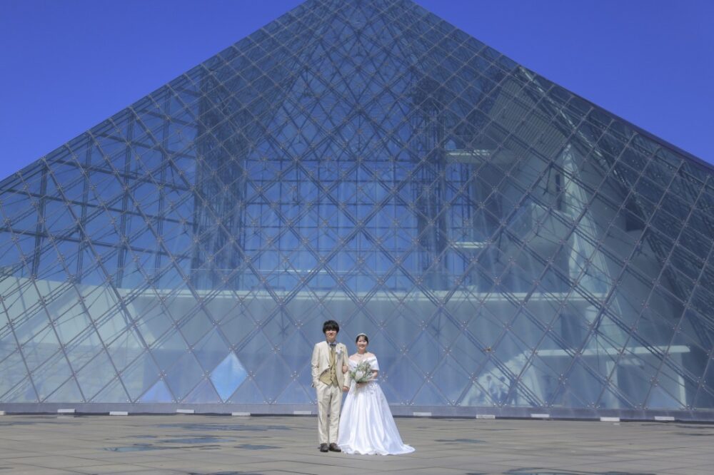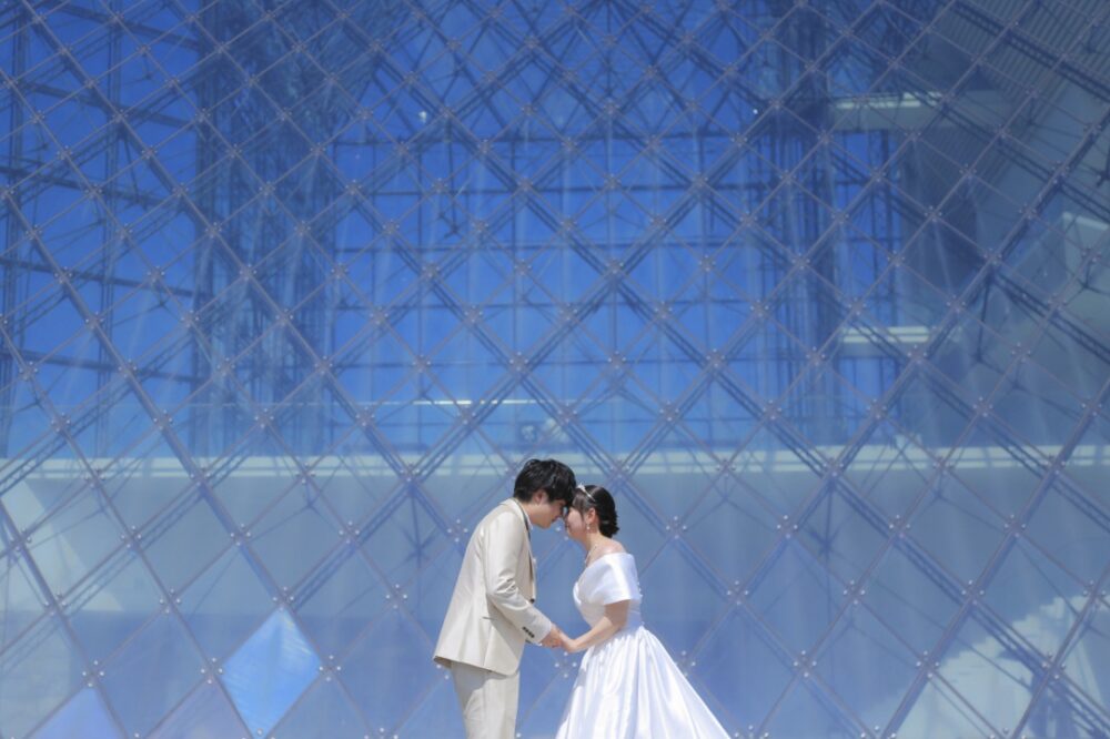 まずはモエレ沼公園の象徴でもあるガラスのピラミッド前での撮影です。