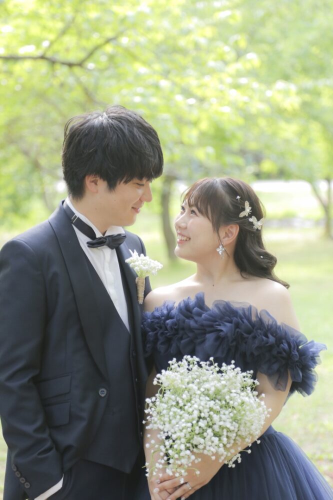 お互いネイビーのお衣装に着替えて撮影スタート。