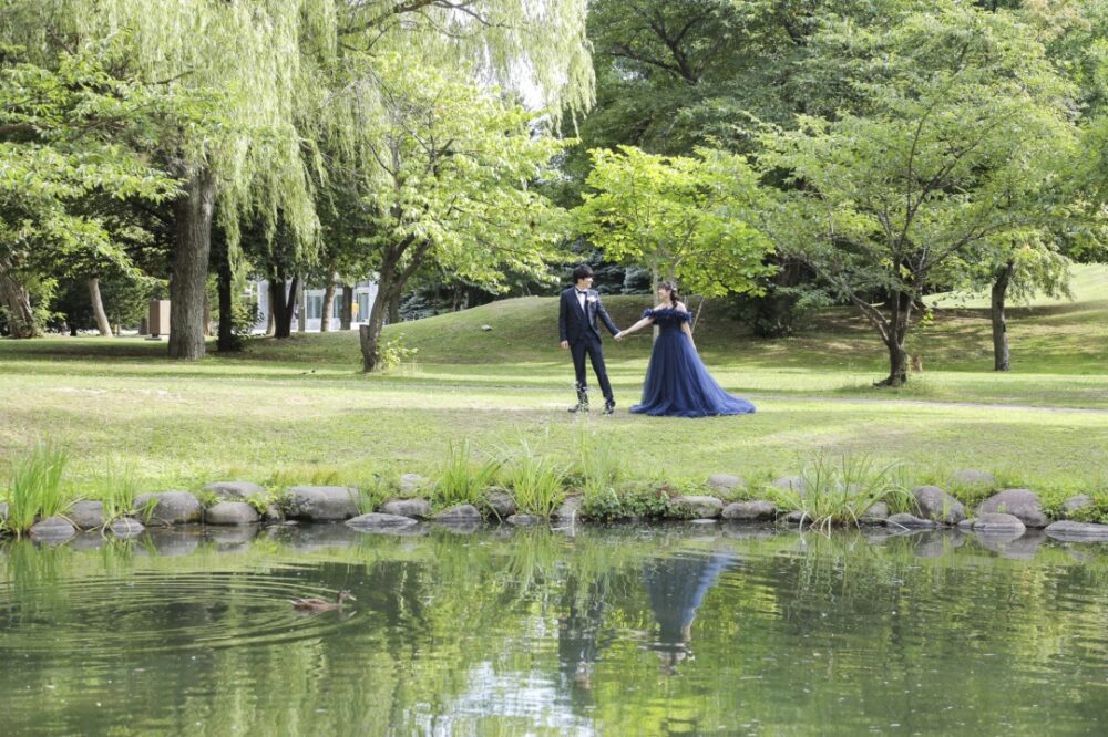 水面に映るおふたりもエモーショナルな雰囲気に残せます。