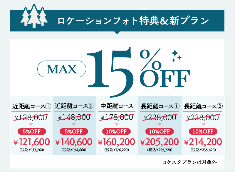 「どんな雰囲気で、どんな思い出を残したいか」 ふたりの理想に合わせて、最高のステージを選んでみてください。 スタジオを飛び出したその先には、想像を超えるふたりの姿が待っています!