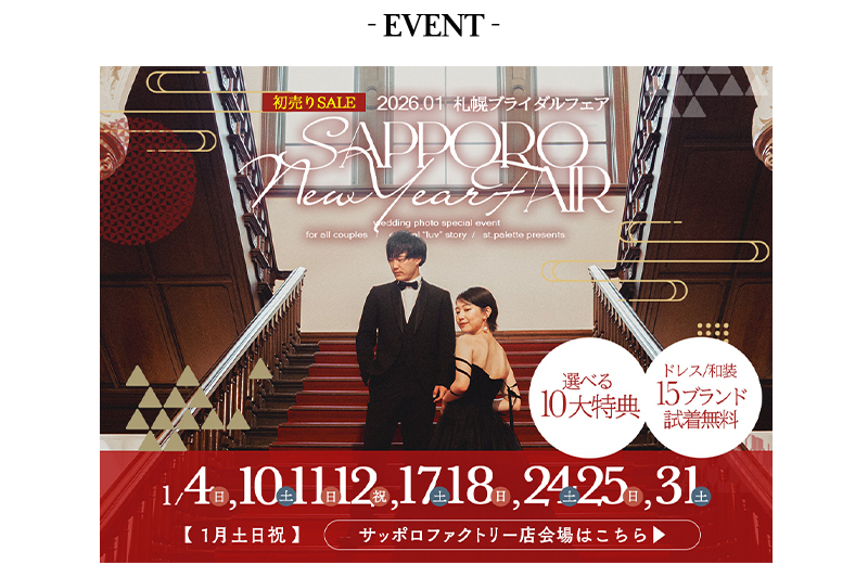 ★【サッポロファクトリー店】2026年1月初売りセール!毎週末ブライダルフェア開催!