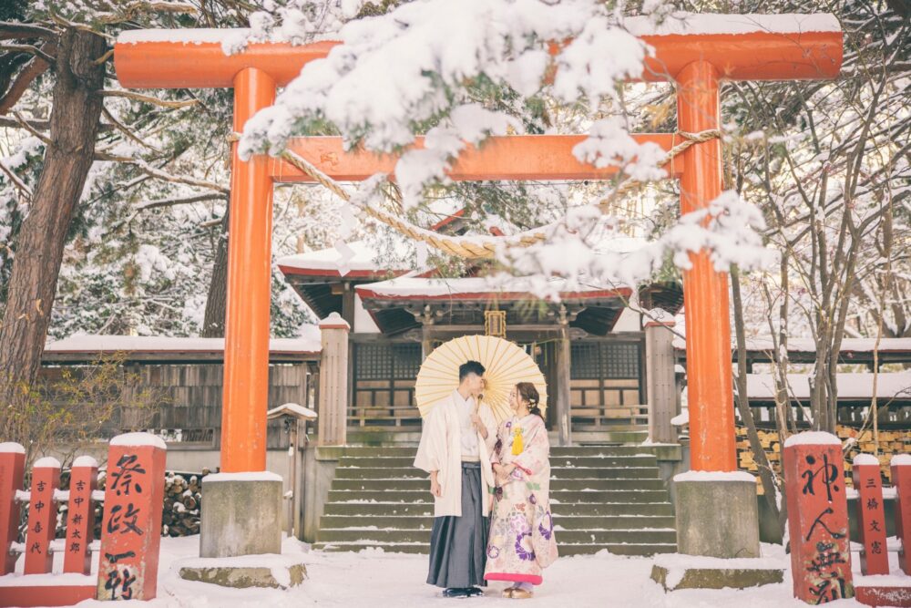 3月の美しい雪景色と朱色の鳥居をバックに、世界に一つだけのブライダルフォトを撮影しませんか?