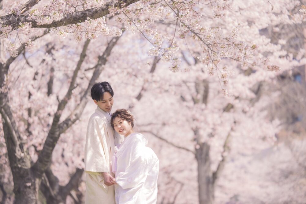 札幌の春を彩る中島公園で、忘れられないロケーションフォトを叶えませんか?満開の桜がアーチのように二人を包み込み、水辺のせせらぎが心地よい特別な空間。和装が最高に映える「プレミアロケ」ならではのビジュアル美と、四季折々の自然が織りなす感動の撮影体験をご紹介します!