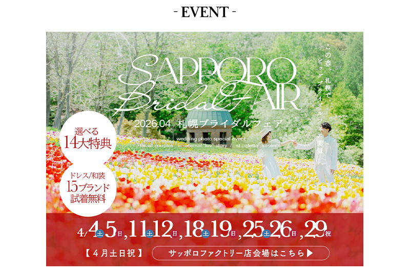 ※札幌ブライダルフェアと4月キャンペーンとの併用はできません。予めご了承くださいませ。