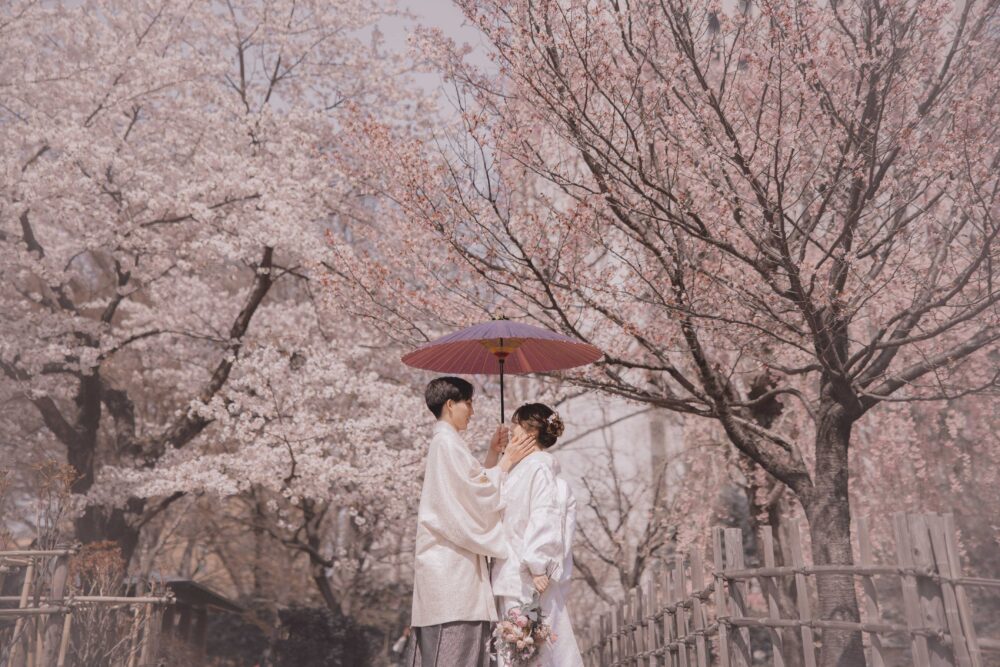 秋は紅葉やイチョウ並木が人気で、オレンジや赤の葉が和装に映え、日本の秋を感じられる一枚に。冬には雪景色と和装が調和し、幻想的で静けさのある写真が撮れるスポットもおすすめです。それぞれの季節にしか出会えない風景と和装だからこそ生まれる特別な雰囲気が、二人の結婚写真を特別な思い出に残します。季節ごとに衣装のカラーや撮影小物を工夫することで、さらに個性豊かな仕上がりに。シーズンごとのおすすめロケーションをぜひチェックして、希望の時期にぴったりのプランや撮影場所を選んでください。