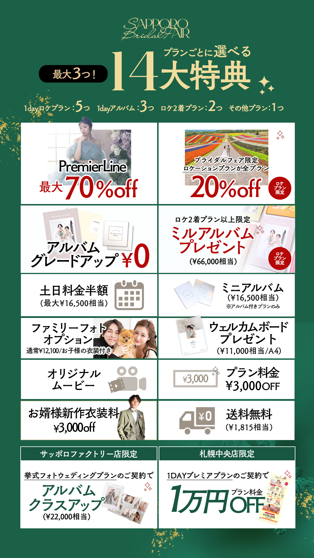 ⚠️PremierLine最大70%OFFは1dayアルバムプランの場合の追加料金¥40,000から最大70%OFF(¥28,000割引)でのご提供となります。