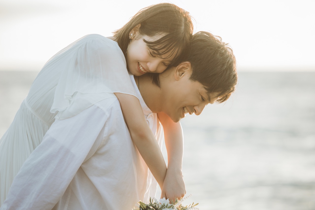 キラキラと反射する海面の輝きが、まるでお二人を祝福する天然のスポットライトのようです!