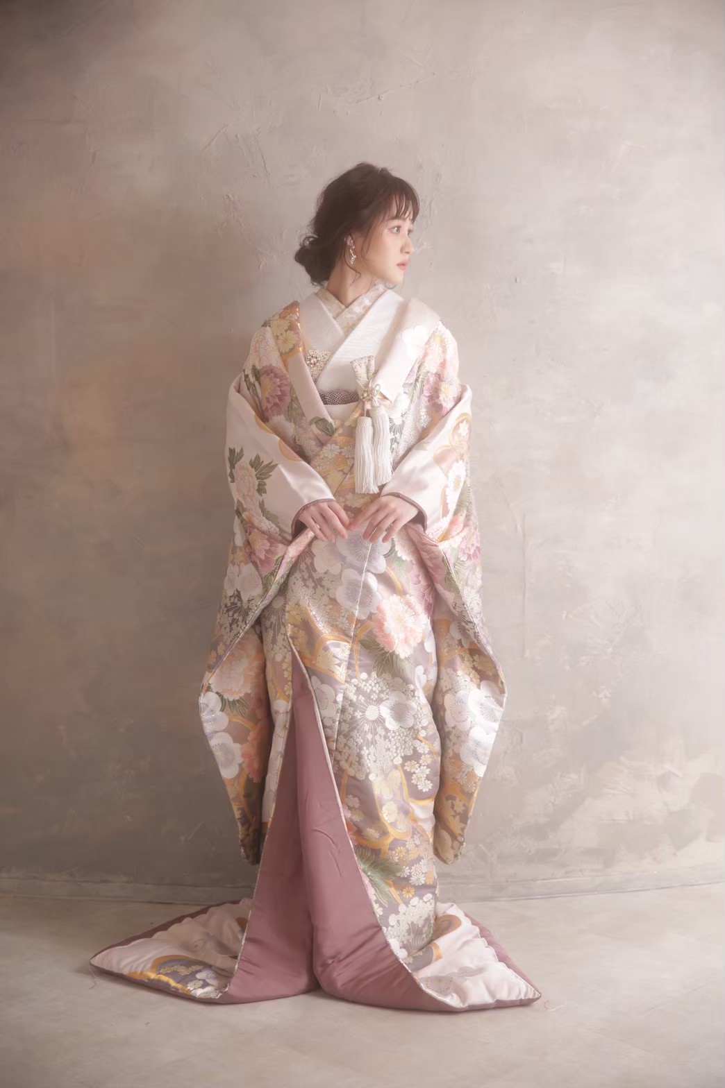 淡いピンクのお衣装となっており、可愛らしい色打掛となっております!