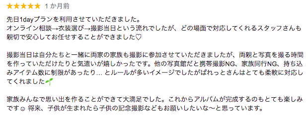 皆様からの温かい口コミはぱれっと中央店スタッフみんなの励みになっております!