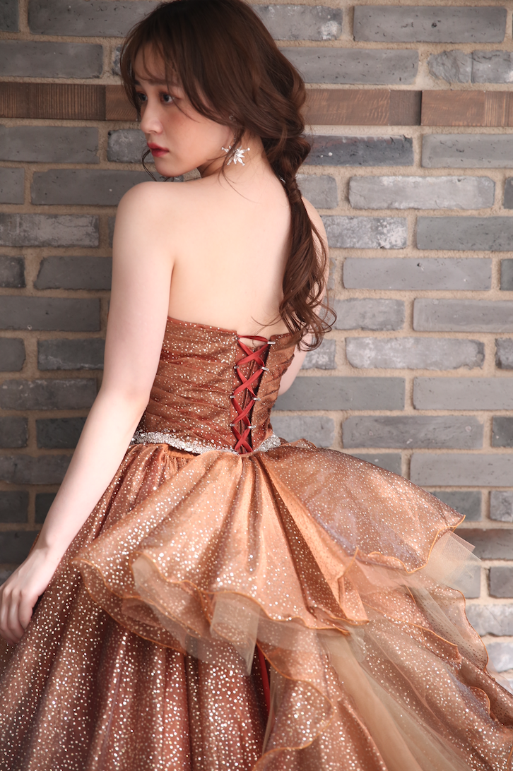 ドレスでは紐で締める、編み上げのタイプとファスナータイプの2つがあります。