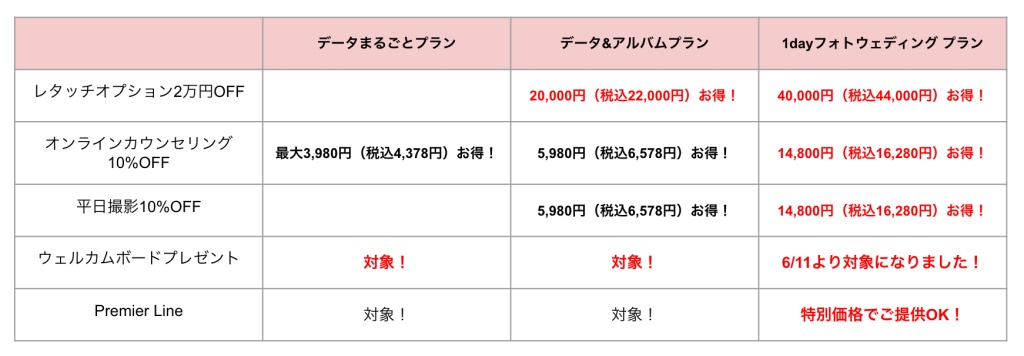 6月11日より、1DAYフォトウェディング プランにも適用OK!となり、全プランが対象に♩