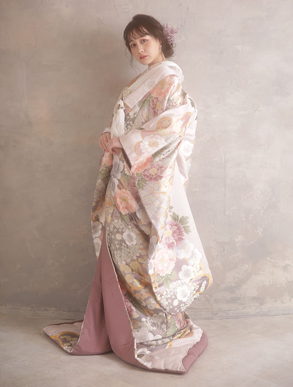 The luxurious uchikake, which is worn after the furisode is worn inside, is the epitome of Japanese beauty.