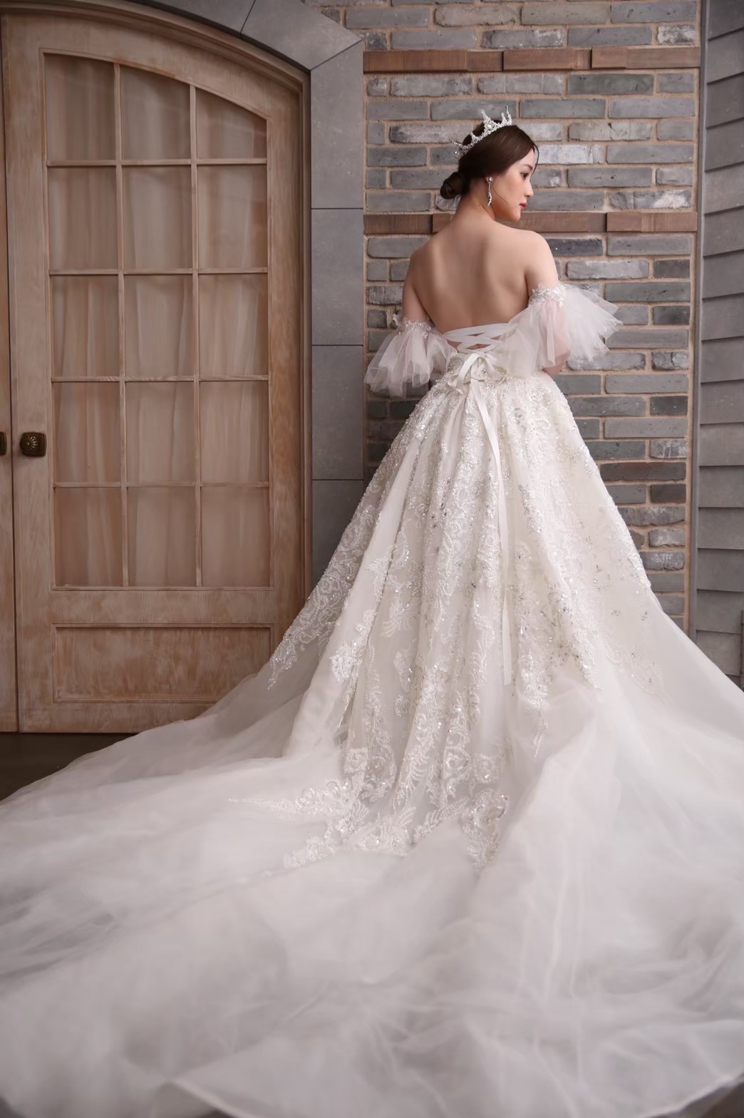 韓国風ウェディングドレスは細部まで刺繍が美しいドレス