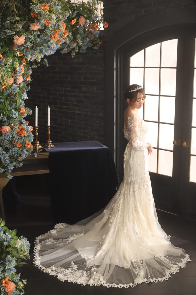ご新婦がこだわってお選びになったドレスの特徴であるトレーンのレースが綺麗に写るよう、バックショットもしっかり残していきます。