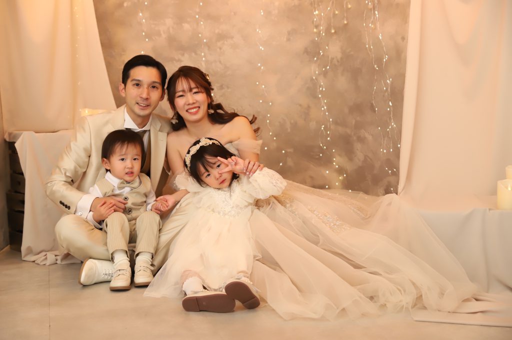おふたりだけではなく、2歳と4歳のお子様とファミリーでのご撮影も行っているので