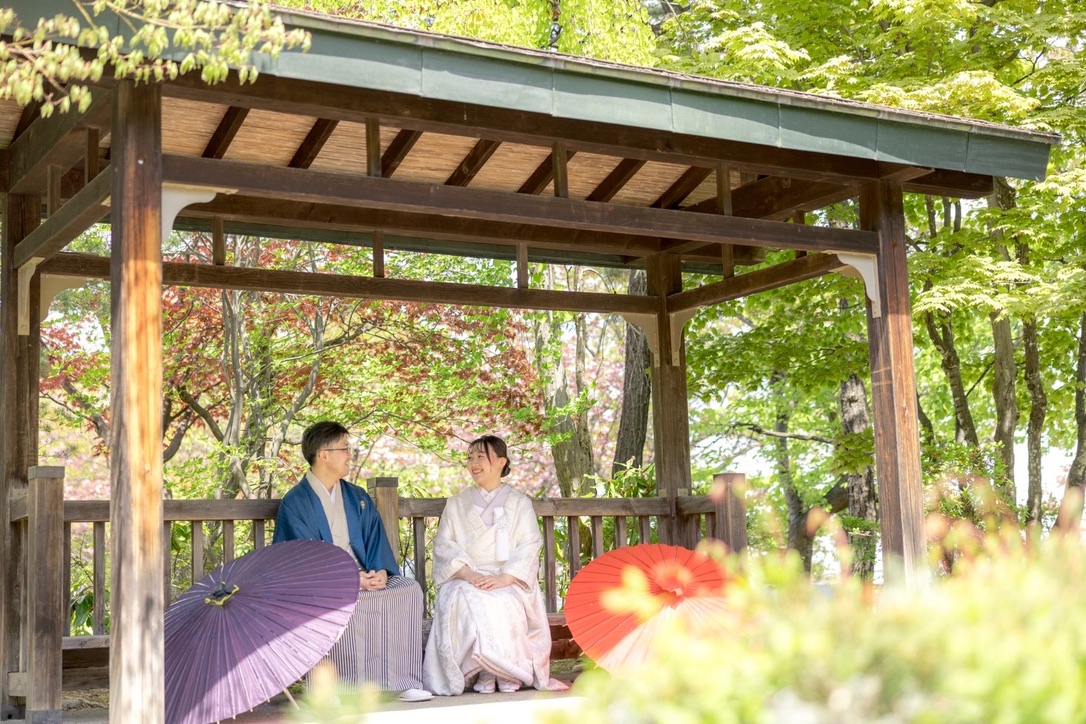 ロケーションならではの鮮やかな新緑と和装の組み合わせが魅力です!