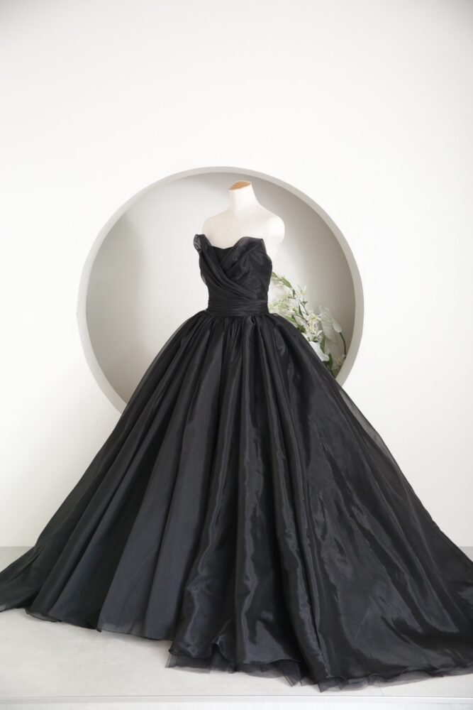 1着目は、おしゃれ花嫁さんに大人気のブラックドレス。