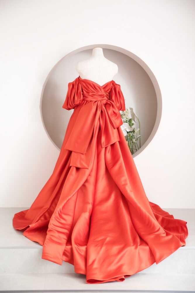 2着目はビビットカラーが目を惹くドレス。