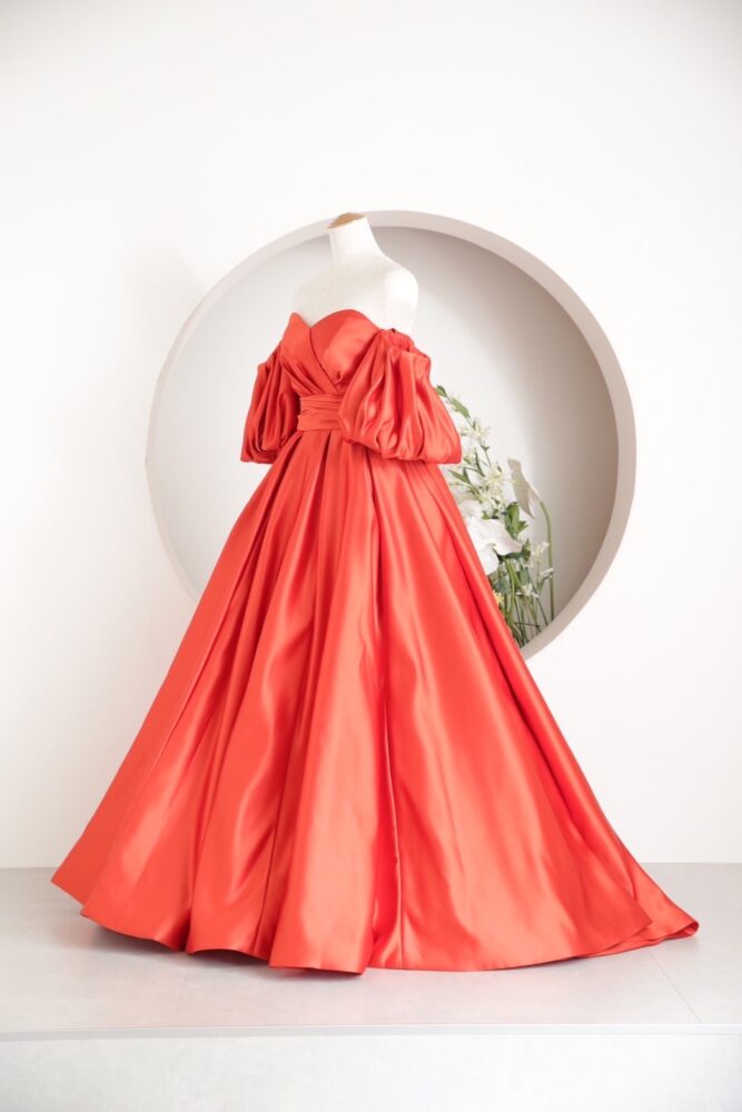 艶感のあるサテン生地にビビットカラーの組み合わせが新しく、他の方とは被りたくない花嫁さんにおすすめです!