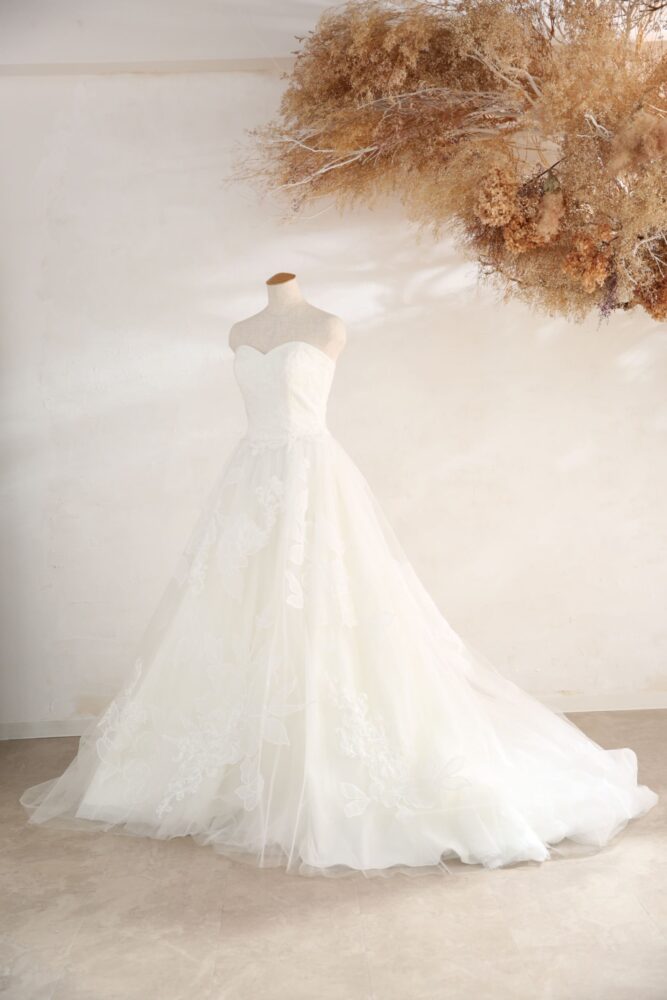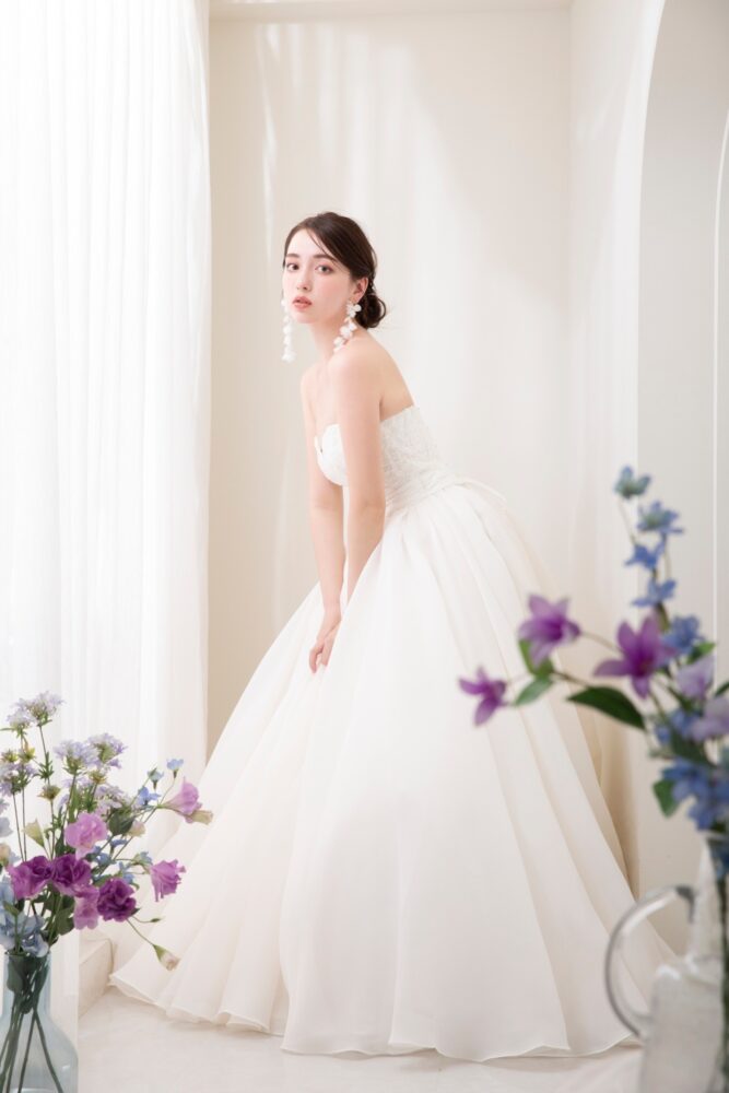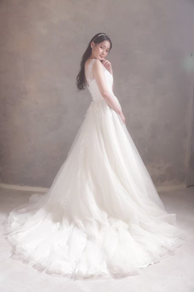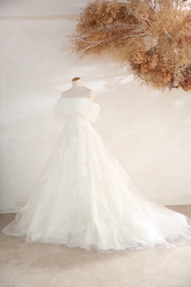 やわらかな質感のチュール素材のウェディングドレス。