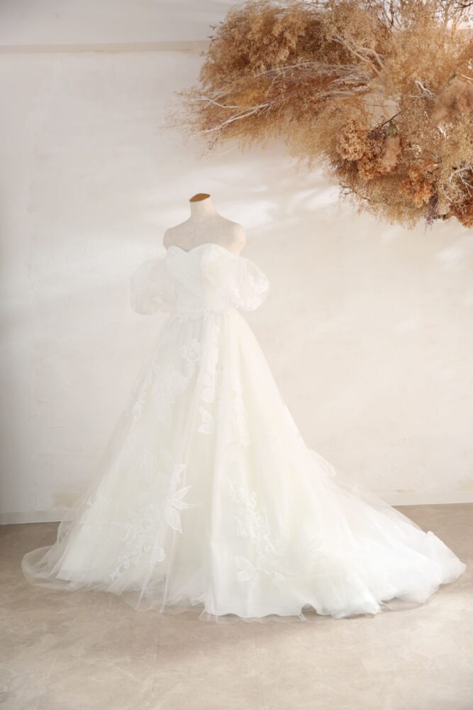 ドレス全体のボリューム感のあるシルエットが素敵な1着。