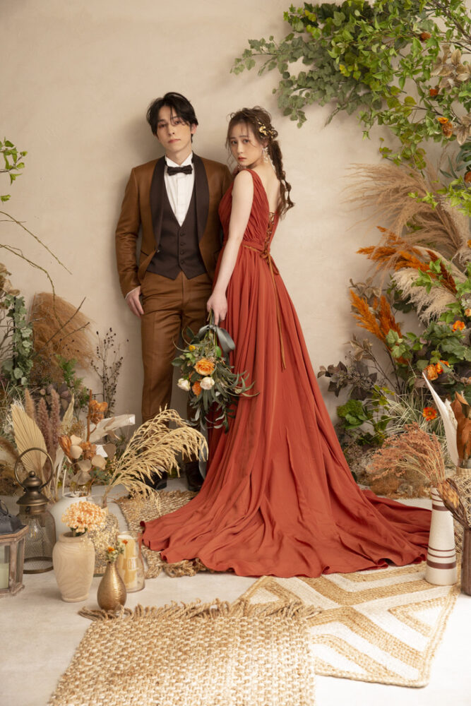 ・トレンド感あふれるカラードレスで、オシャレな結婚写真にしたい!