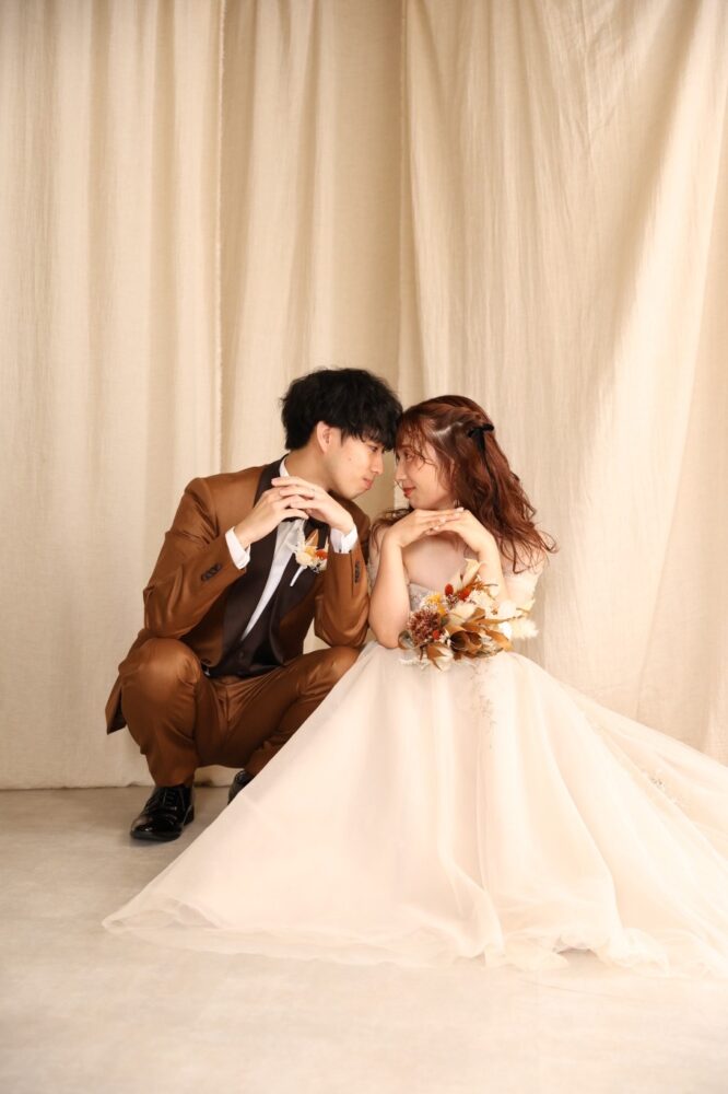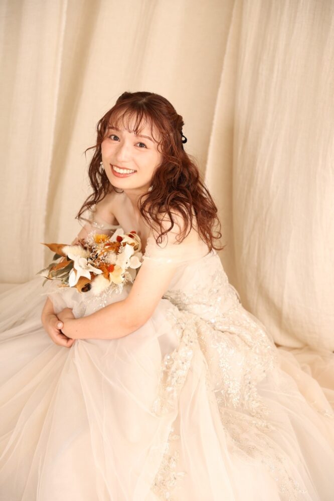最後は、ビジューが美しいベージュドレスでの撮影です。