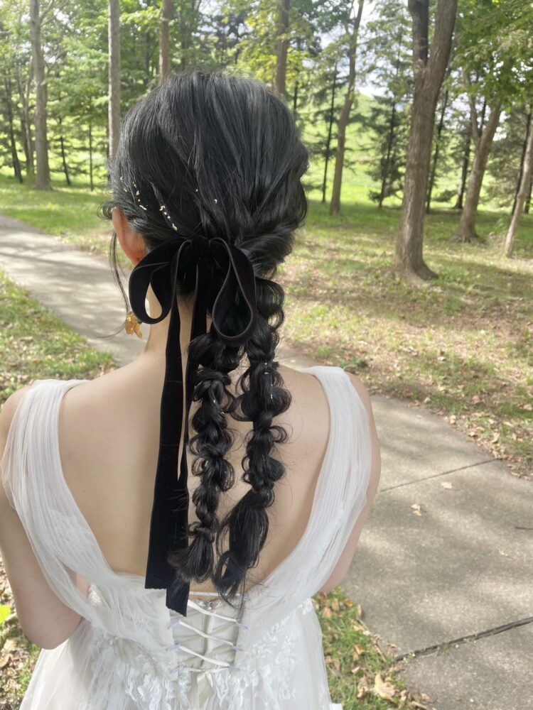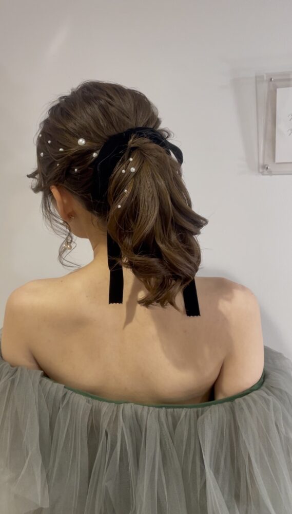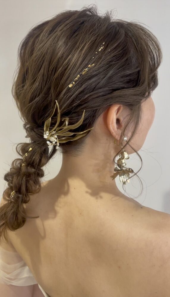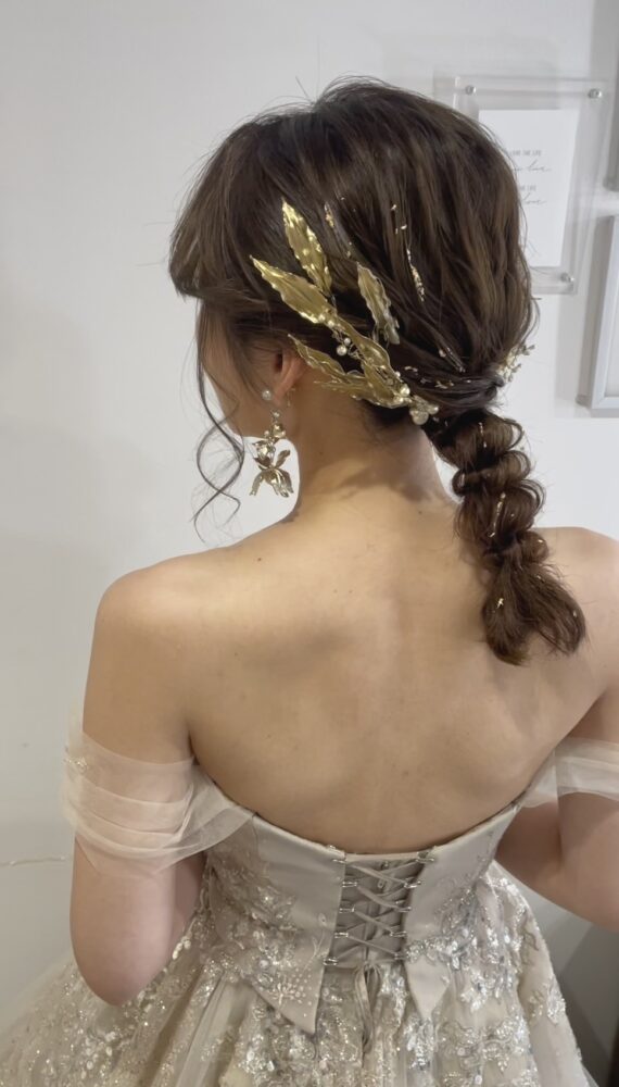 正面からはスッキリ、サイドからはボリュームも出て華やかな印象に仕上がります♡