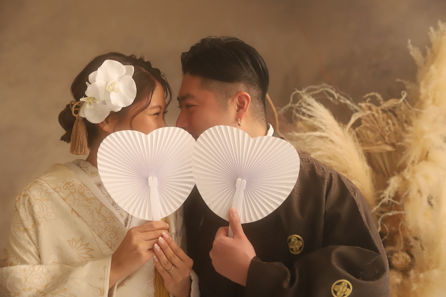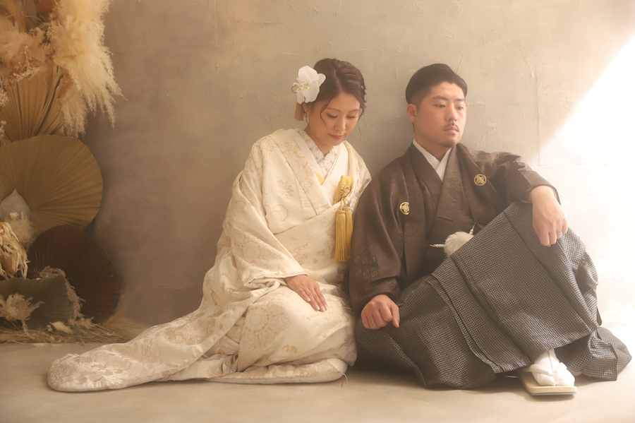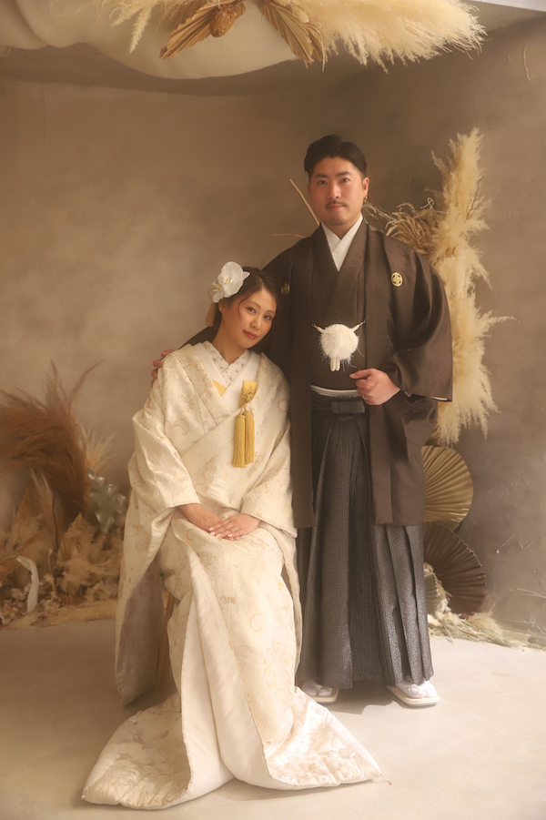 撮影場所:Belle Dry / 撮影衣装:和装茶・白無垢ゴールド