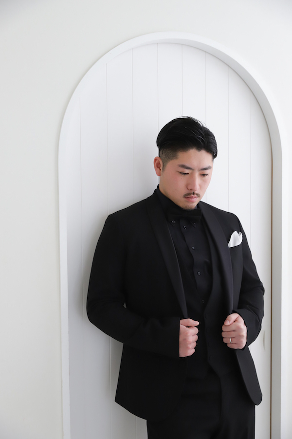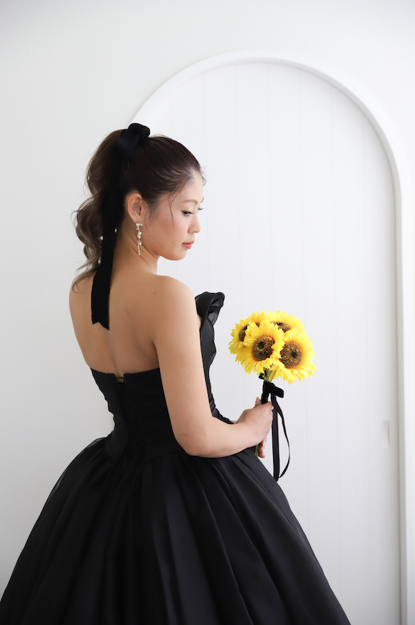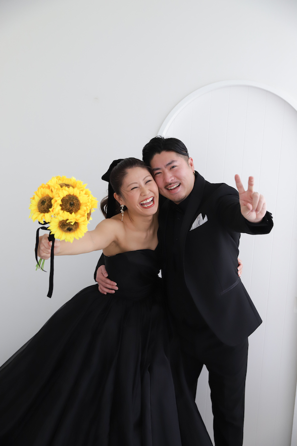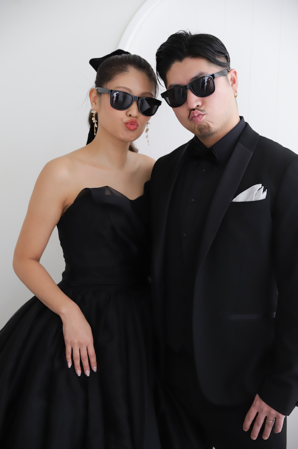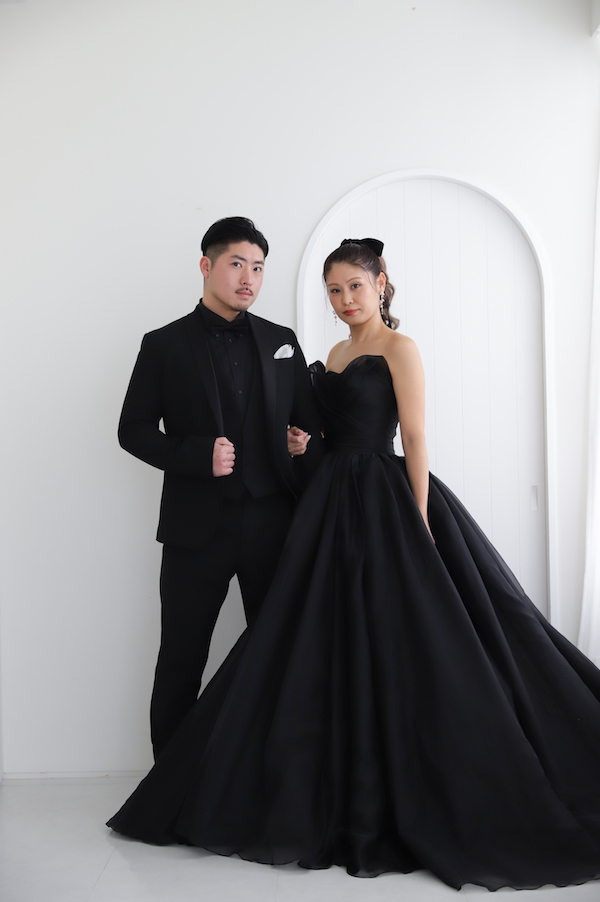 2着目はブラックのドレスにブラックのタキシードをあわせた