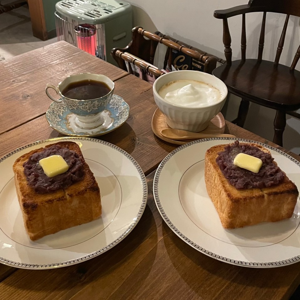バターをたっぷり塗ったトーストに自家製あんこをたっぷり。