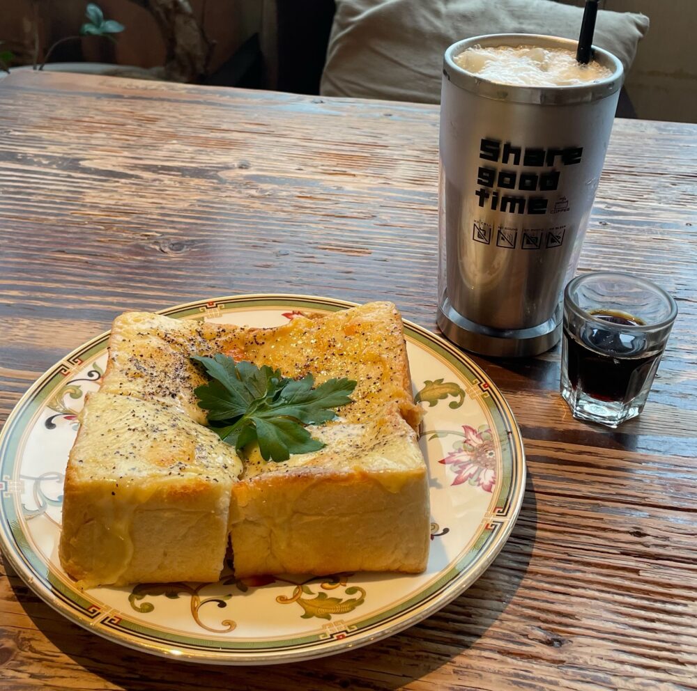 厚切りふわふわパンに、とろとろチーズとアクセントにブラックペッパーが効いたトーストは、常時メニュー!
