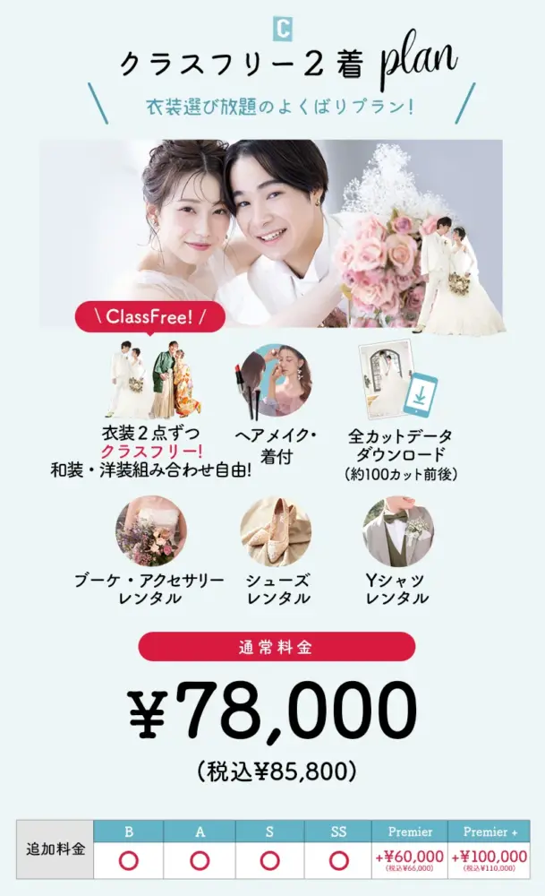 当店1番人気Plan!衣装3着&必要なものが中にぎゅっと詰まっています。