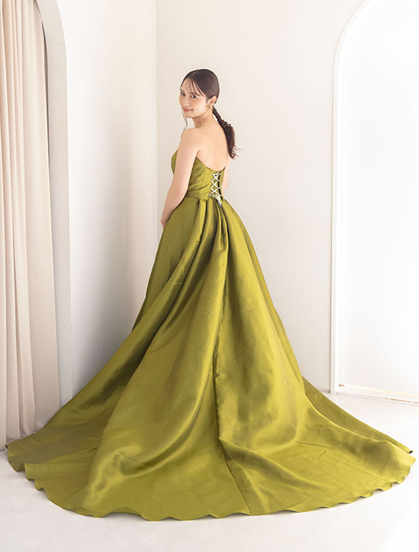 現代のトレンドを意識しつつ、ドラマティックでモダンな一着です。