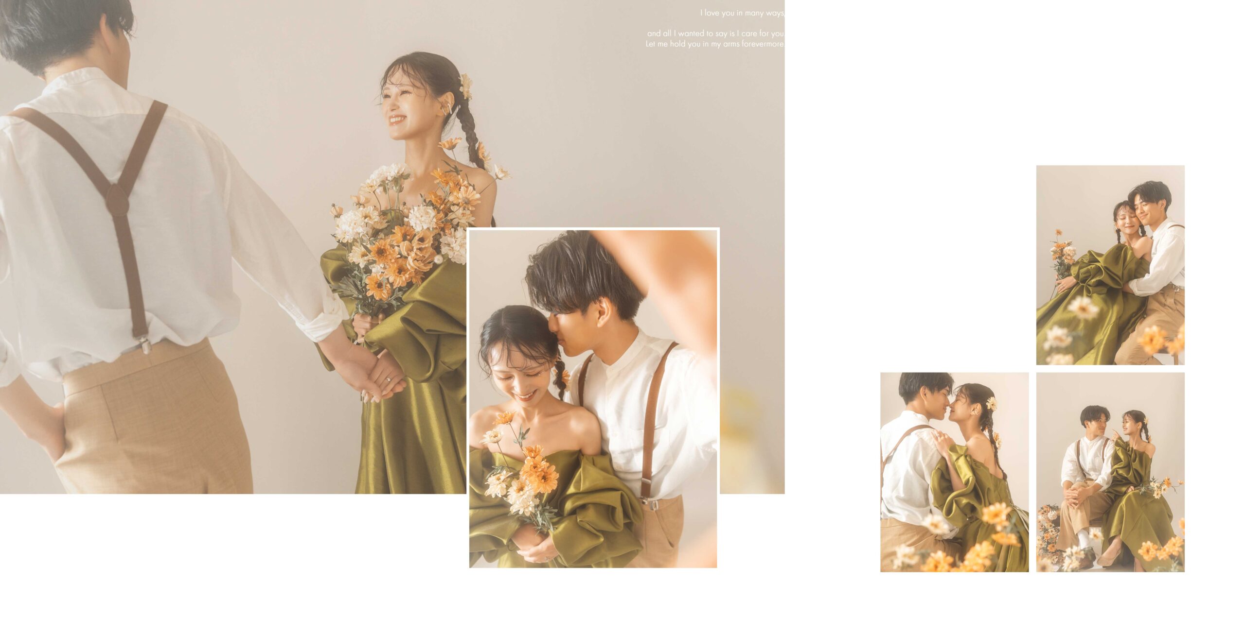 お二人の特別な一日を、色褪せることのない美しい形で残すお手伝いをさせてください。