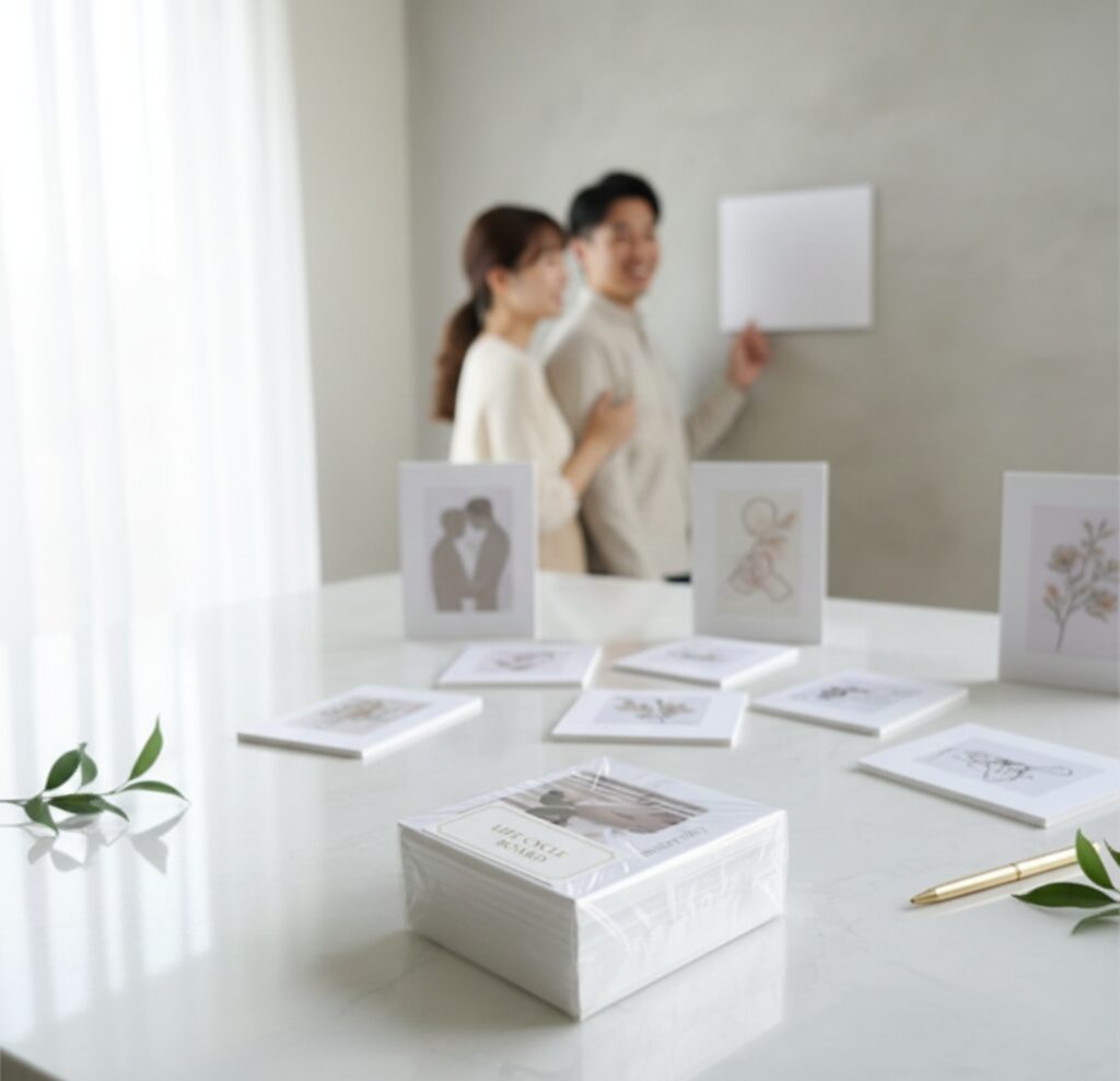 こんにちは!写真工房ぱれっと札幌中央店です! 写真工房ぱれっとの専属デザイナーが手がける『ライフサイクルボード』が新登場いたします! このボードは、 おふたりがこれから歩む人生の節目を、 おふたりらしいペースで残していけるように、 そっと“余白”を込めておつくりしました。