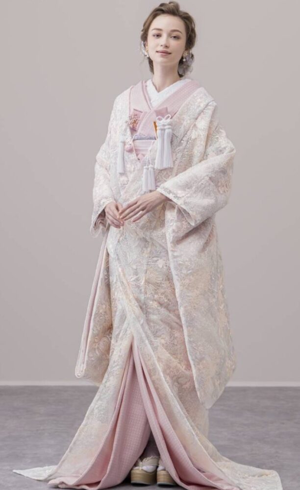 特に注目なのが、ドレス感覚で着用できる「レース色打掛」です。