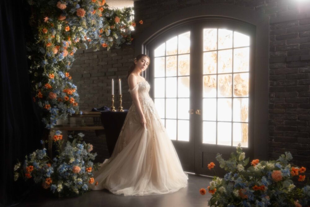 コーディネートの幅も広く、アクセサリーやヘアアイテム、バッグなど好きなアイテムと組み合わせて、自分だけのウェディングスタイルを楽しめます。