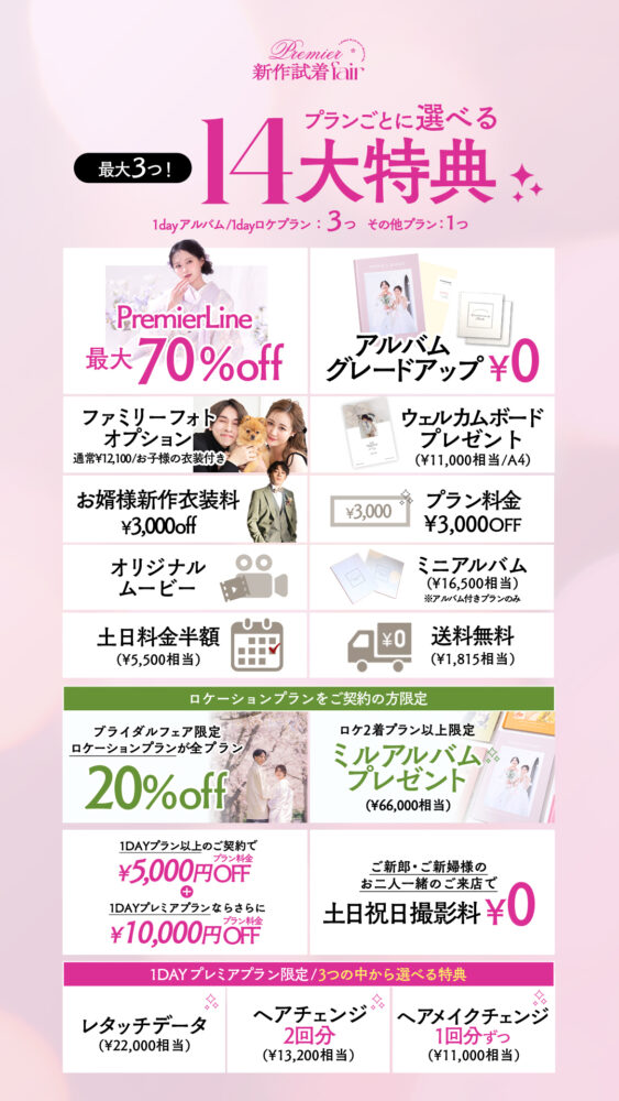 お得に理想のウェディングを叶えるチャンスが詰まっています。