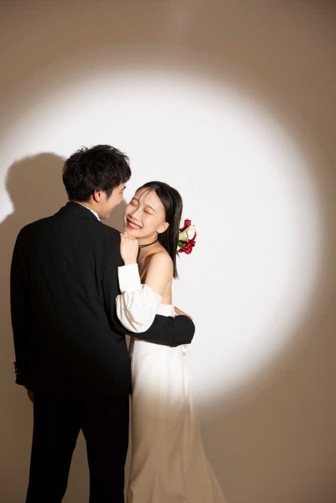 スタジオの強い照明の下でも、肌がくすまず、立体的に、そして何よりお二人が一番自信を持てる表情になれるよう仕上げていきます。