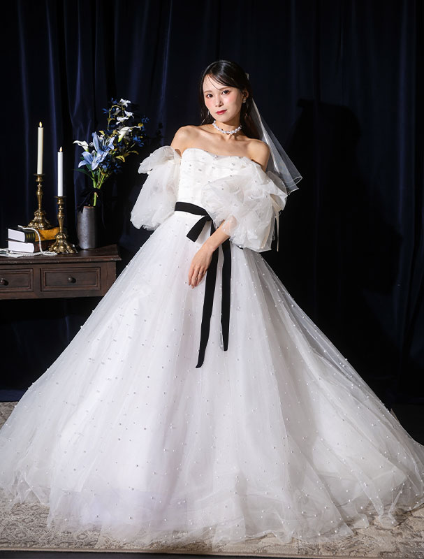 スカートや裾、トレーンの広がりは、ウエディングドレスの全体印象や会場の雰囲気を大きく決定づけます!