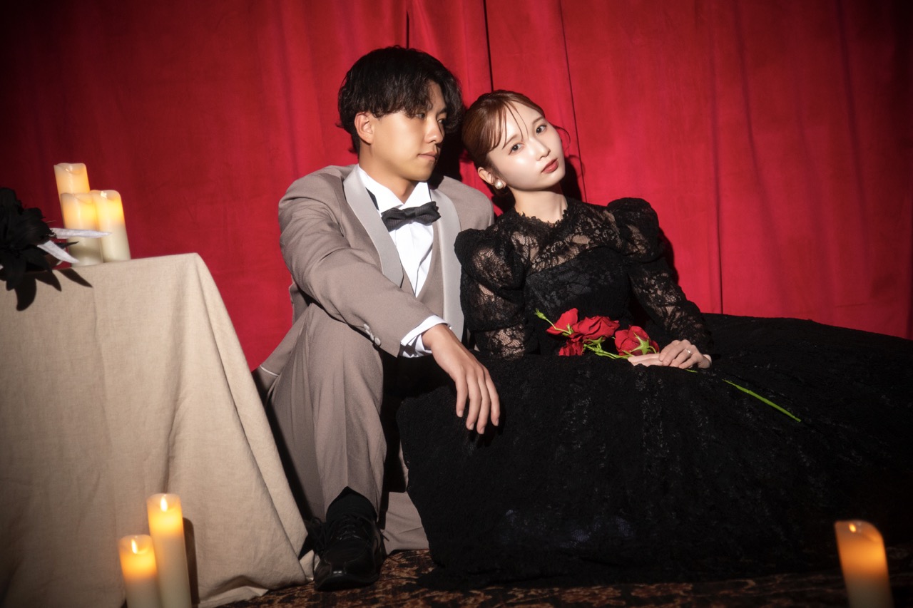 フォトウェディングや前撮りでは、会場背景にマッチする色味やデザインを選ぶことでドラマチックな一枚が残せます💖